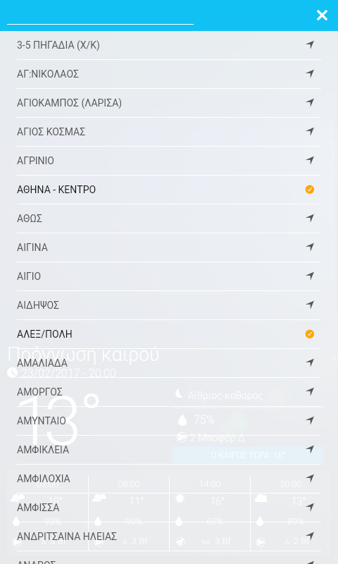 * Καθημερινές ενημερώσεις και προβλέψεις για τον καιρό (επιλογή «Νέα»)