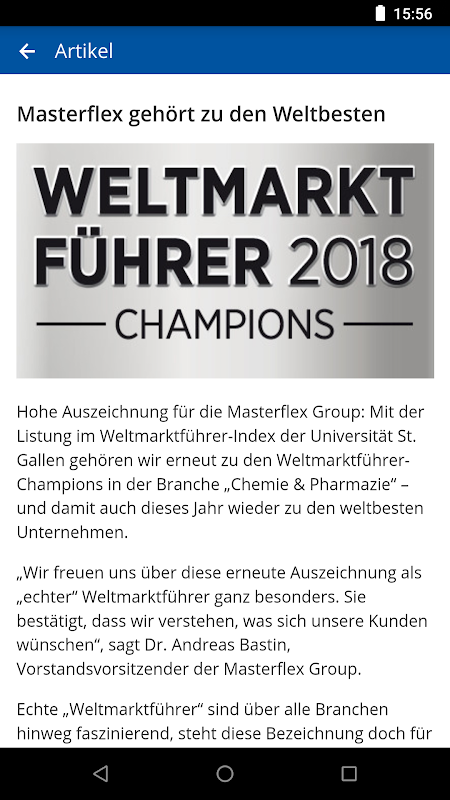 MFGconnect principalement informé les employés ainsi que des partenaires et des clients du Groupe Masterflex pleinement au courant de l'actualité du Groupe. Avec les notifications sont donc toujours et partout à jour.