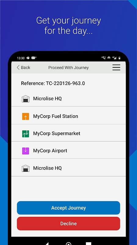 Si vous ne travaillez pas pour une entreprise utilisant le logiciel Microlise, vous ne pourrez pas vous connecter ou accéder aux données de trajet, de collecte ou de livraison.