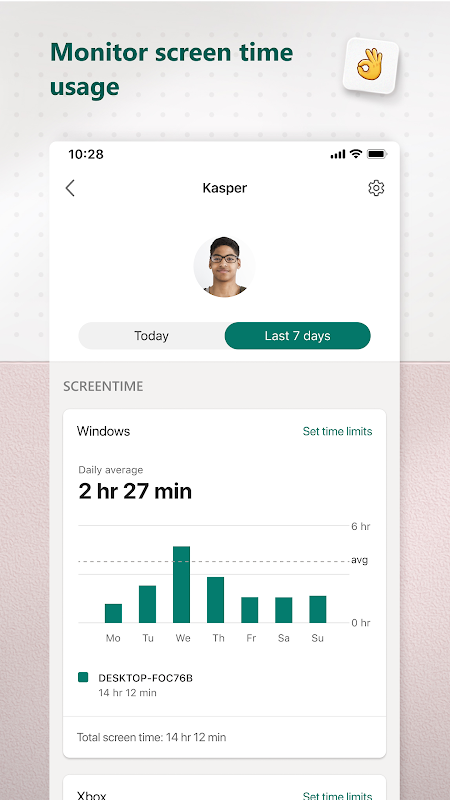 Aidez vos enfants à équilibrer leur temps d'écran. Définissez des limites pour des applications et des jeux spécifiques sur Android, Xbox ou Windows. Vous pouvez également utiliser la gestion des appareils pour définir des limites de temps d'écran sur tous les appareils sur Xbox et Windows.