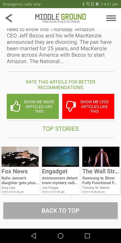 Middle Ground fonctionne comme un flux pour vous montrer les dernières nouvelles.
