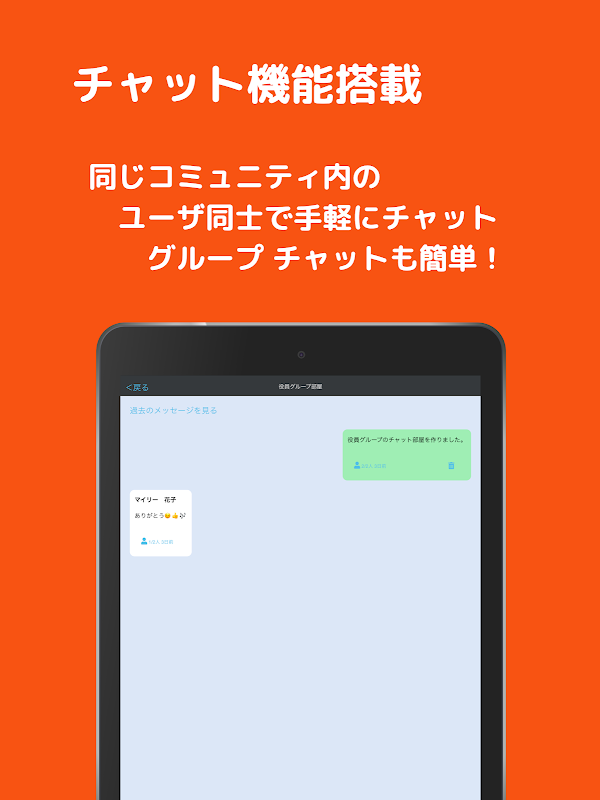 手軽なコミュニケーション、情報の共有、アンケート、ボランティアの募集などを簡単に行うことができます。