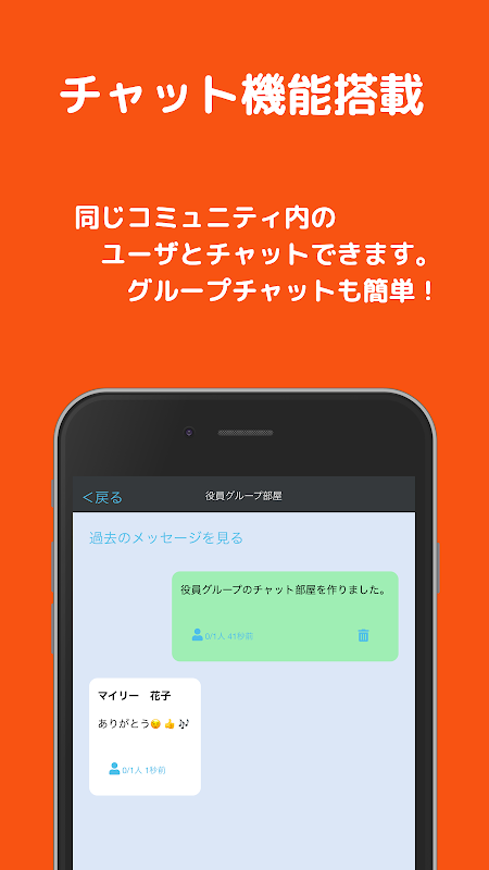 個人チャット、グループチャットができます。