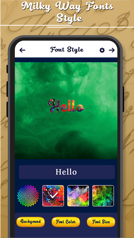 Milky Way Fonts Style app with not only Milky Way font style bt app also allows the option to personalize your choice Background with amazing font styles. It is easy and simple to use by any users, Just select your choice BG from the collection and apply text styles with your own words and save it. App also allows users to amazing font styles to change it and also change the size of the text. App with share your wish text into amazing font styles.