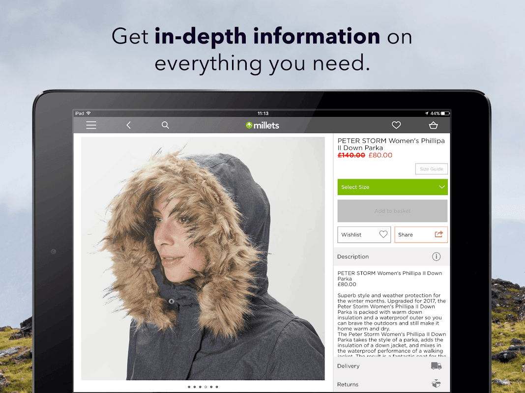 Bienvenue sur l'application officielle de Millets le magasin de plein air. Ici vous pouvez parcourir notre vaste gamme de vêtements de plein air, chaussures, tentes et matériel de camping en déplacement, ainsi que de passer des commandes, recevoir des offres uniques, et de trouver votre magasin le plus proche.