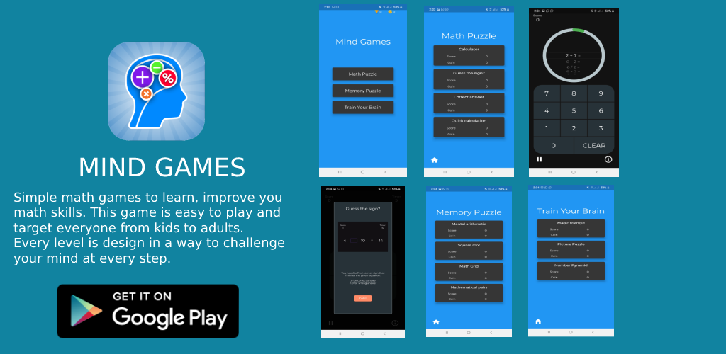 Simple math games to learn, improve you math skills. This game is easy to play and target everyone from kids to adults. Every level is design in a way to challenge your mind at every step.