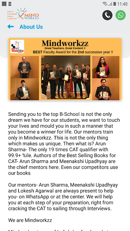 Mindworkzz is one of India’s leading brands in Aptitude training and testing. We are involved in training aspirants for the CAT over the past 2 decades and have trained over 10000 IIM Graduates. Besides we are also involved in conducting classes for GMAT, CLAT, CSAT, UPSC, BBA and CRT (campus recruitment training). Our key partners include companies like McGraw Hill Education, Hungama, Airtel, Applied Mobile Labs etc.
