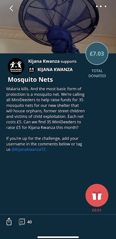 Soutenez les causes qui vous passionnent en faisant don de très petites quantités, à partir de 1p, de manière transparente dans l'application, pour n'importe quel message. Chaque message est lié à un organisme de bienfaisance enregistré au Royaume-Uni.
