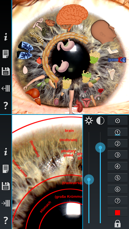 💡 Visuels et commentaires ajustables : modifiez la luminosité et le contraste pendant l'affichage des photos, superposez les images avec une topographie de l'iris et enregistrez les commentaires pour une analyse améliorée.