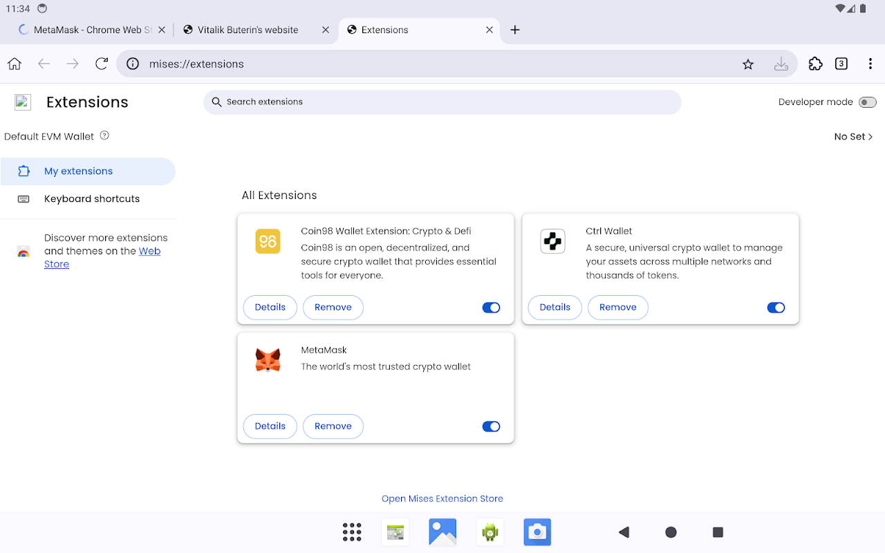 Mises Browser prend en charge de nombreuses extensions Chrome sur mobile. Les utilisateurs peuvent installer et exécuter des extensions web3 sur Mises.