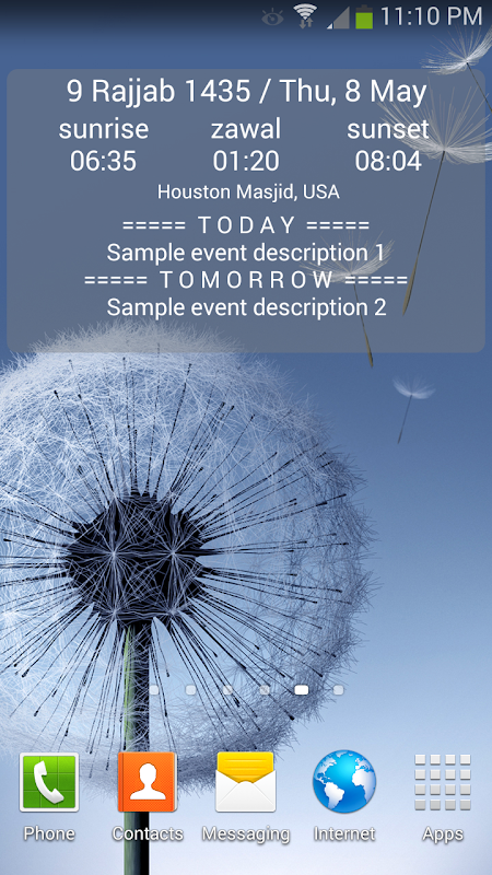 - Affiche fois namaz et permettre réglage des alarmes pour des moments différents.