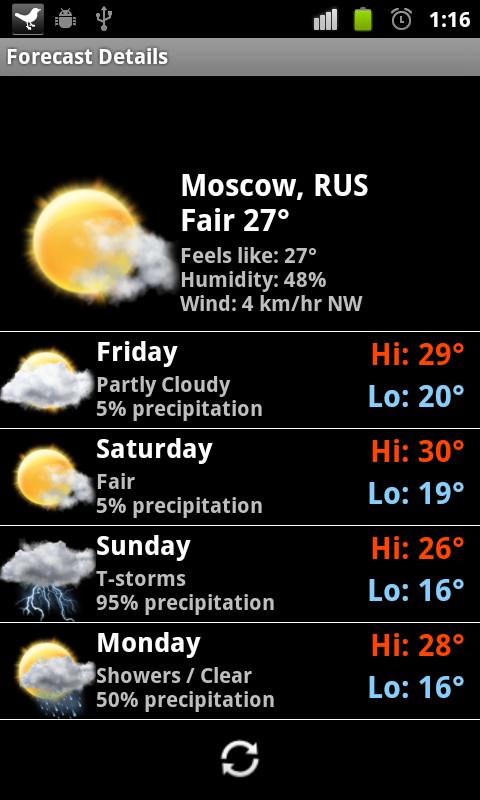 Launch by pressing the moon icon in weather forecast screens