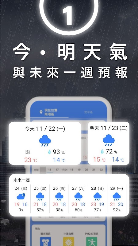 即時天氣資訊、今日天氣與明日天氣、一週預報,所有你想要的天氣資訊都在這裡,而且完全免費!