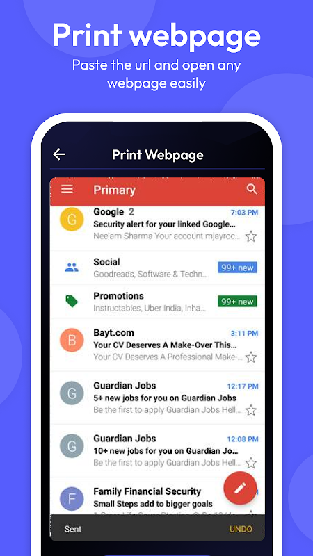 Imprimez et numérisez des documents, des images directement depuis votre mobile vers n'importe quelle imprimante.