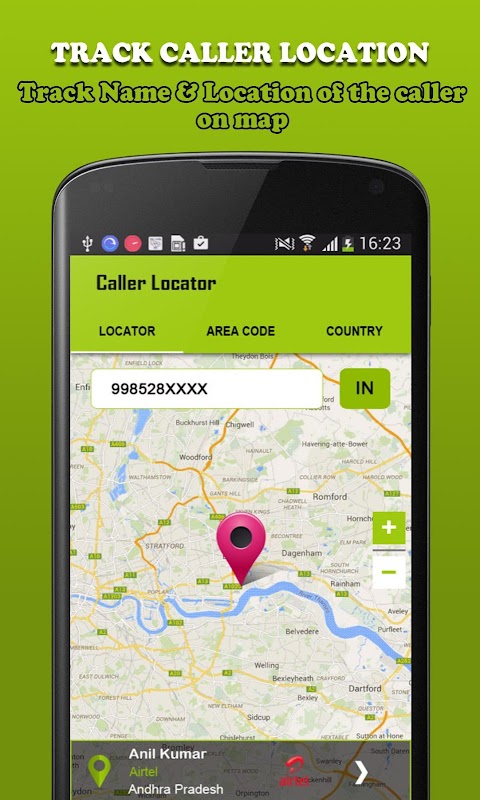 Mobile Number Caller Locator vous permet de rechercher et de suivre tout numéro de téléphone mobile ou le numéro de téléphone fixe dans le monde, dont 246 pays et 12982 villes zones. Cette ligne & localisation du numéro mobile fixe permettra de suivre l'emplacement exact géographique (zone de la ville, état, pays et même les fournisseurs de services) du numéro de téléphone et l'afficher sur la carte.