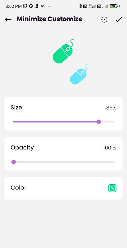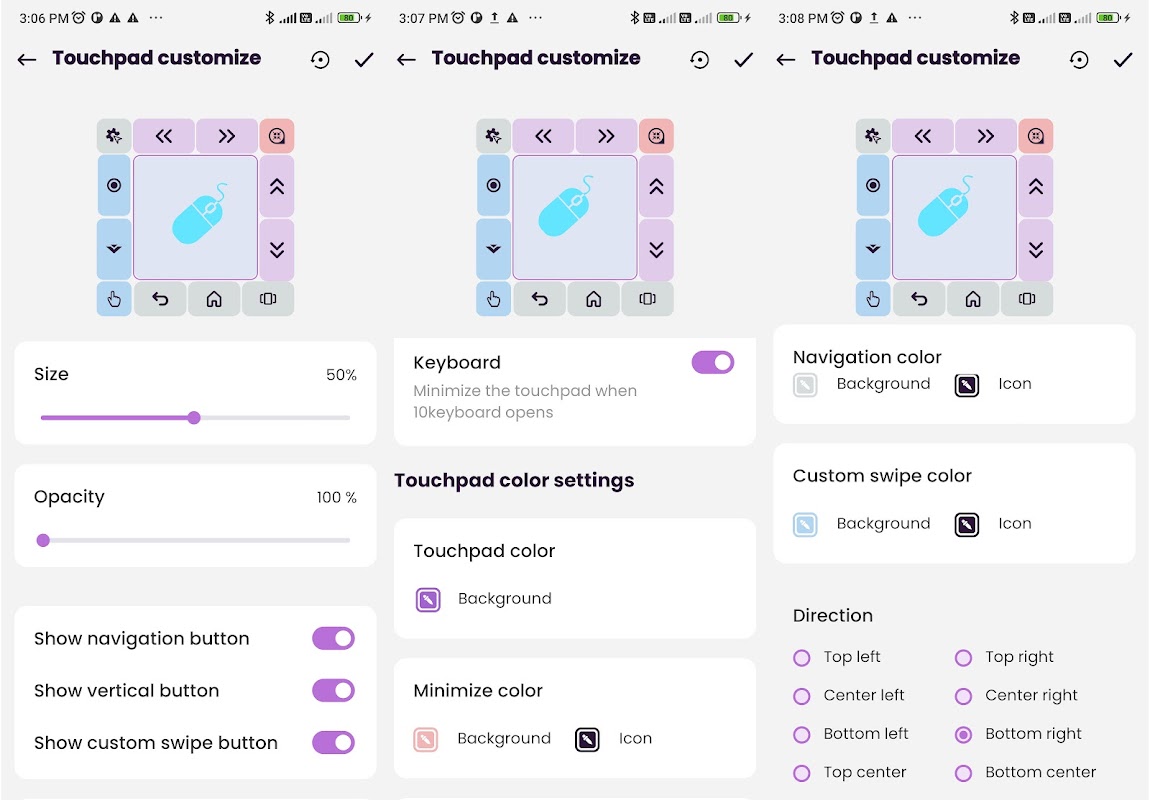 - Option pour modifier la taille et l'opacité du pavé tactile minimisé.