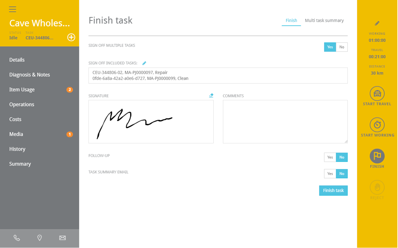 - Multiple task sign off when finishing tasks