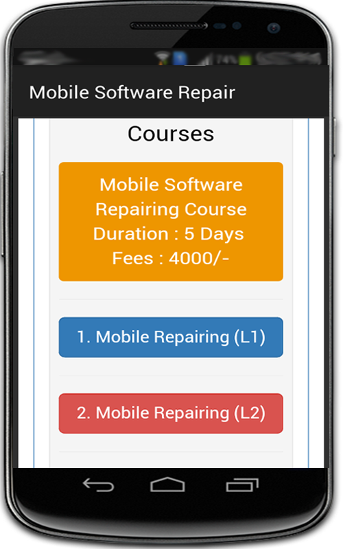 Mobile software repair training course app covers various topics such as flashing, hard resetting of different mobile phones and secret codes.