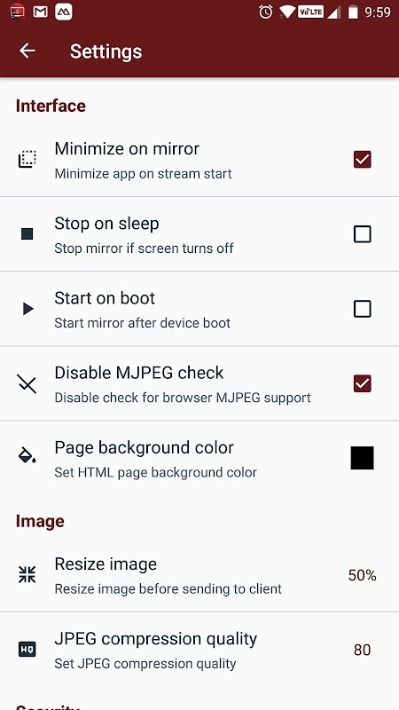Vous pouvez également définir la qualité et la taille de l'écran en miroir.
