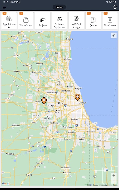 Saisissez rapidement vos dépenses ou planifiez vos appels pour la journée et la semaine. Tracez vos ordres de travail et votre calendrier pour le meilleur itinéraire. Appuyez sur les épingles pour accéder aux détails du rendez-vous.