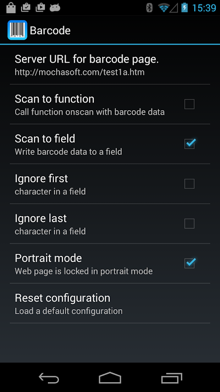 Numérisez les codes à barres avec l'appareil photo Android directement vers votre application Web. Pas besoin d'applications spécialement conçues.