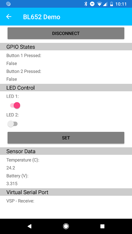Une application intuitive utilisée pour la démo modules Laird BLE.