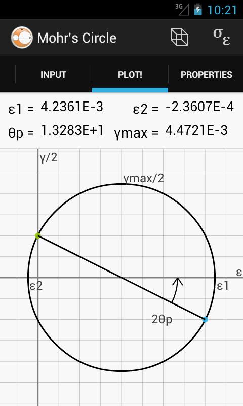 This Mohr's Circle calculator for Android makes it easy to generate Mohr's Circle for stress.