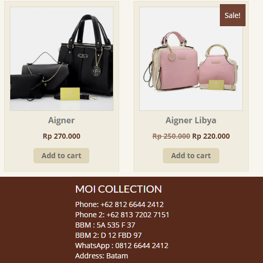 Moi Collection menjual aneka macam tas branded import berbagai merek terkenal seperti :