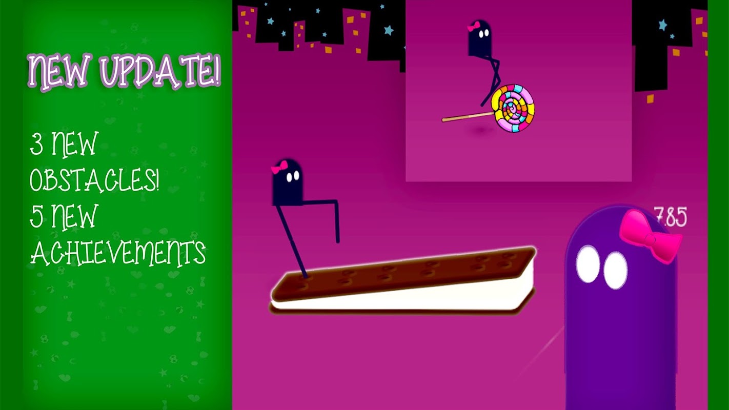 The game is simple, tap on screen to make Mommy Long Legs walk, and help her walk as far as possible. Watch the timing so she won't stumble and fall down.