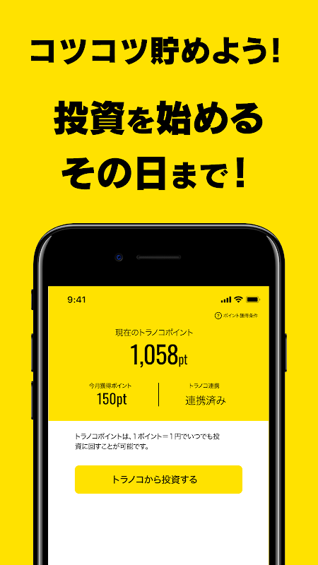 *Les fonds d'investissement accumulés grâce à la marche seront accumulés sous la forme de points Toranoko, qui peuvent être utilisés pour un investissement à raison de 1 point = 1 yen à Toranoko.