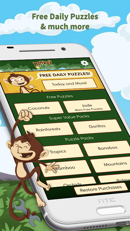 The Monkey Wrench app comes with a free pack of 25 puzzles, free daily puzzles and more than 1000 additional puzzles available for purchase. Download Monkey Wrench today and play the most creative and interesting spelling quiz game that is as addictive as it is fun.