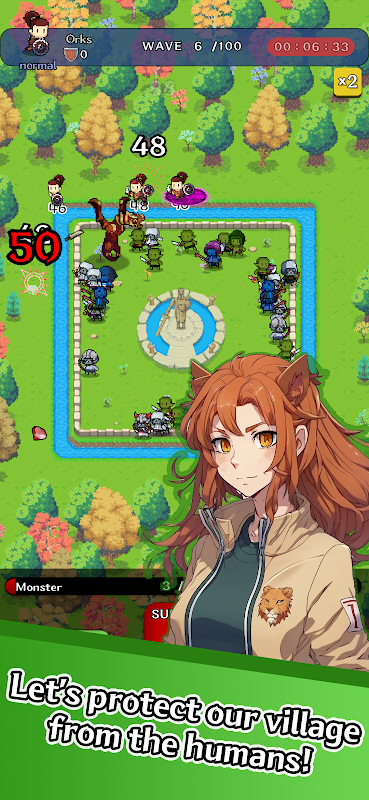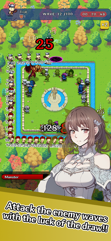 Au fur et à mesure que les vagues progressent, des humains plus forts apparaîtront, mais pas d'inquiétude ! Avec votre chance et votre habileté, vous pouvez invoquer de puissants monstres !