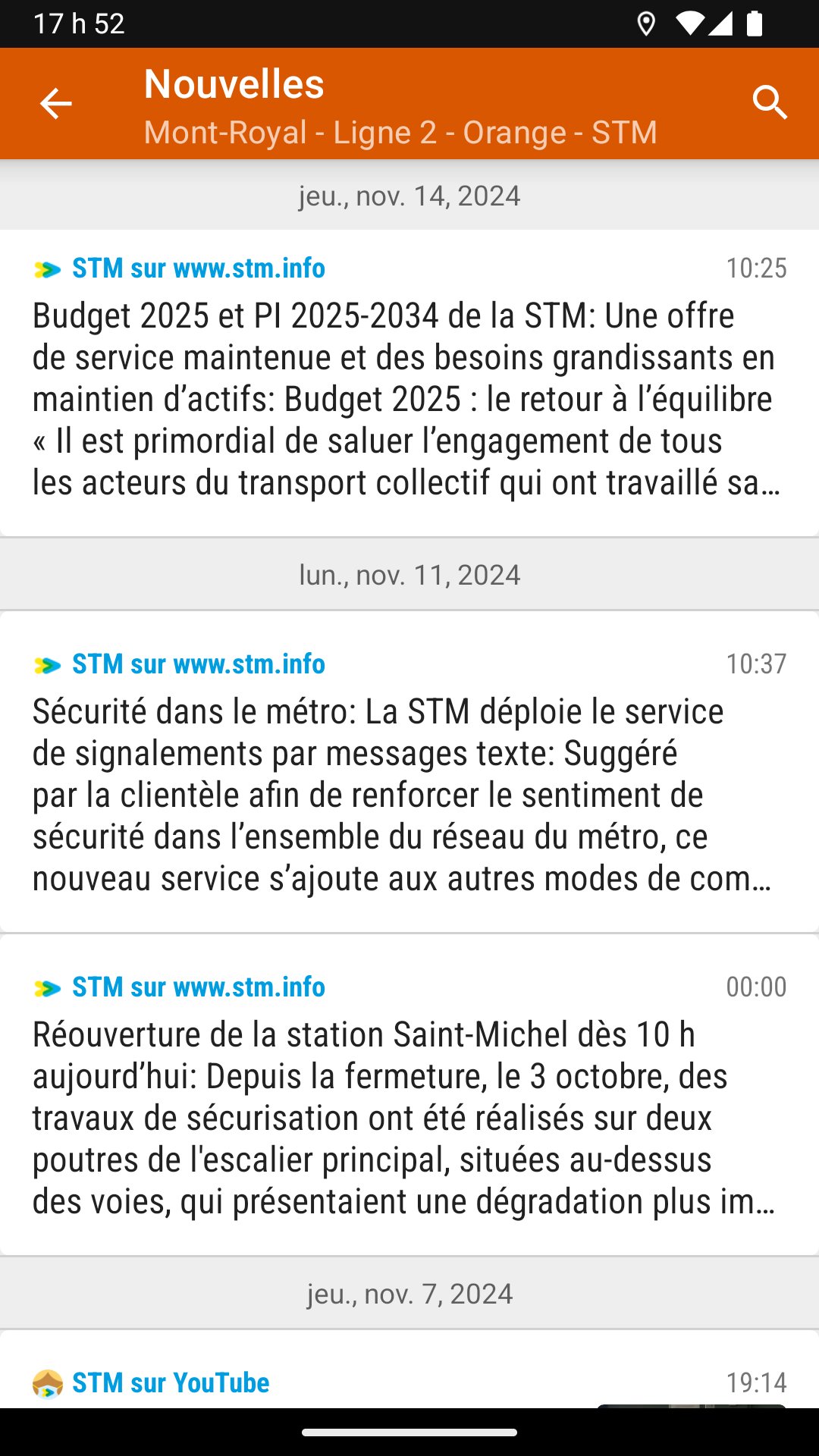 - les messages d'alertes et les dernières nouvelles des agences de transport provenant de leurs sites Internet, blogues, Twitter, YouTube…