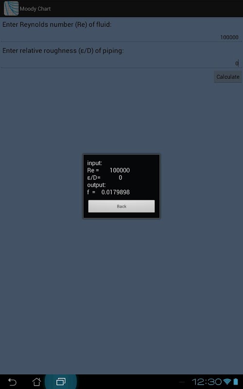 Calcule un facteur de friction donné un nombre de Reynolds et de la rugosité relative.