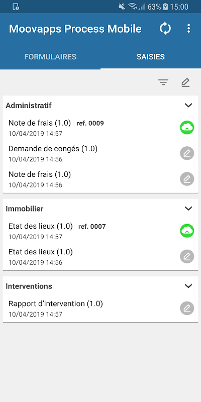 Récupérez vos formulaires créés sur notre application web, ils seront ensuite accessibles avec ou sans connexion internet.