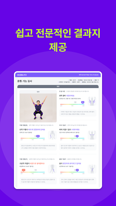 - Morafit est une solution d'analyse de type corporel par IA. Contrairement à l'analyse corporelle matérielle existante, qui était coûteuse à mettre en œuvre et prenait beaucoup de place, il s'agit d'un service qui vous permet d'analyser facilement la forme/le mouvement du corps des membres avec une seule tablette. Essayez Morafit dès maintenant !