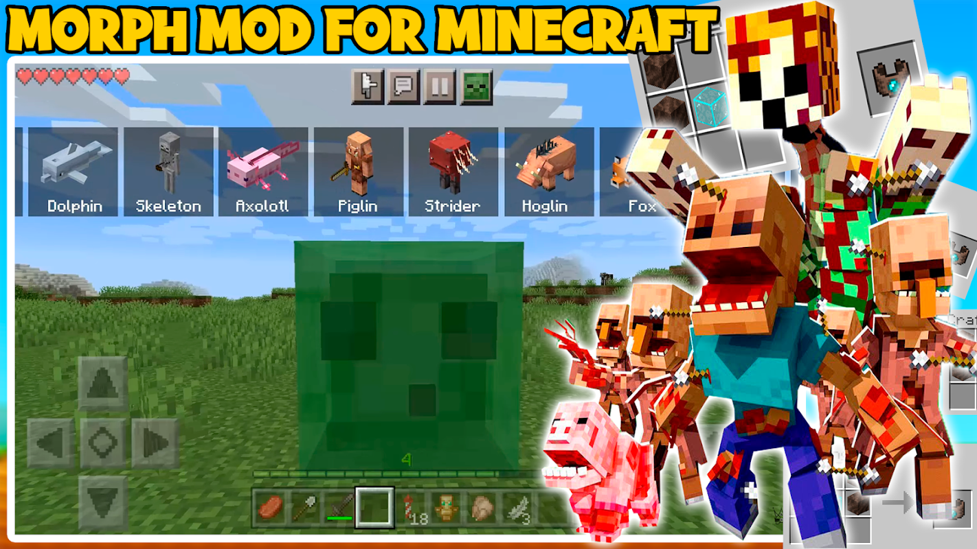 Le mod ajoute un objet sympa au jeu - le mod de bracelet Morphing pour Minecraft PE, un objet puissant qui permet aux joueurs de se transformer en n'importe quelle foule du jeu.