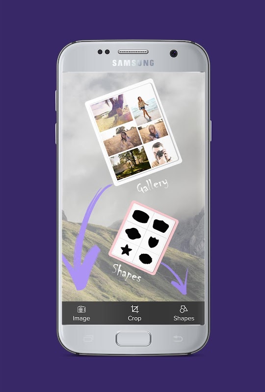 You can cut the selected image into different shapes provided by the app from the shape button.