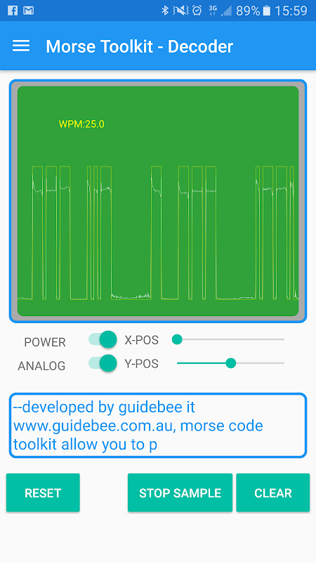 Le décodeur de code morse peut décoder le code morse jusqu'à 100 mpm, il adapte automatiquement à une vitesse différente de code morse, avec un taux d'échantillonnage élevé 88200, il peut même décoder très rapide entrée de code morse comme 200 -300 WPM.