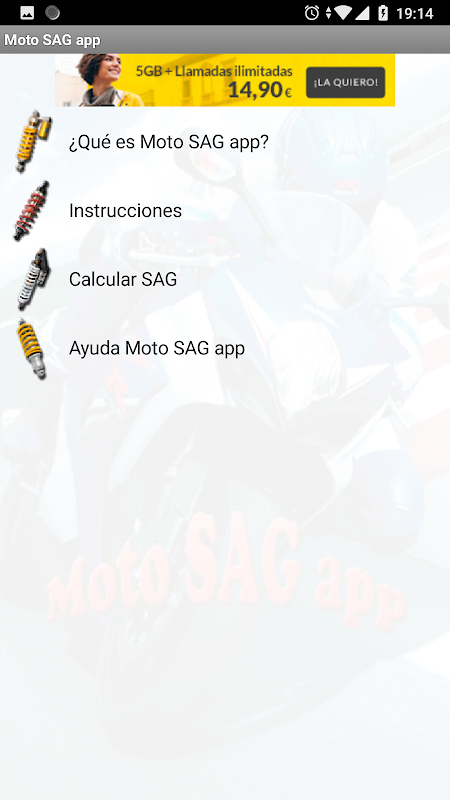 Moto SAG app+ es una aplicación para smartphones android con la que podremos ajustar el SAG de una moto.