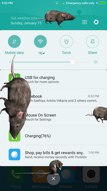 It doesn't matter what you are doing, if you are browsing the Internet, playing a game or writing an email, the vermin will always be visible. You can set on which edge of the phone the animal can move. The frightening effect of rodent is so realistic that you can scare your friends in an easy way. They may believe that a real mouse is walking on the screen of their phone.