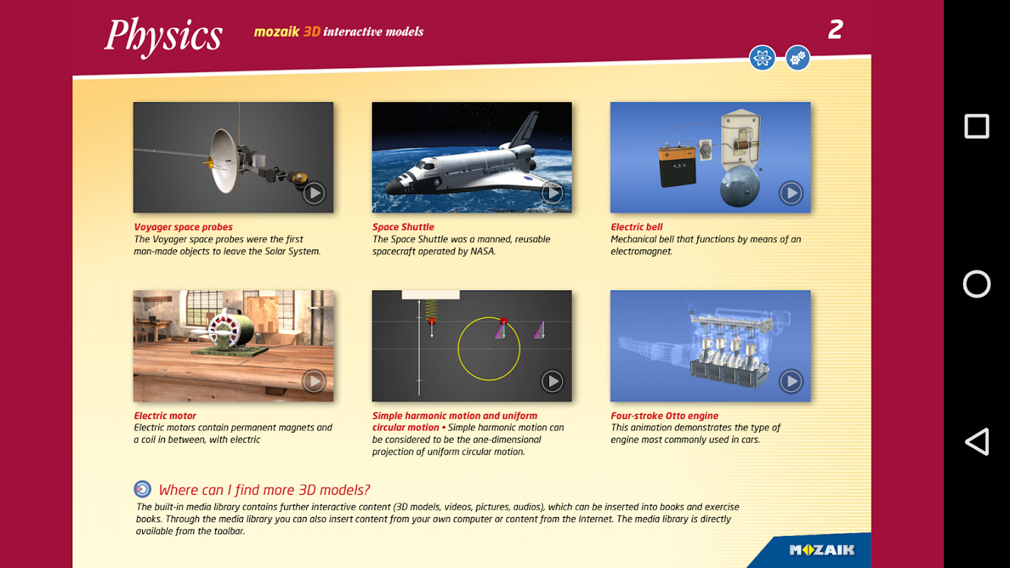Ouvrez des scènes 3D et d'autres contenus extras insérés dans les manuels.