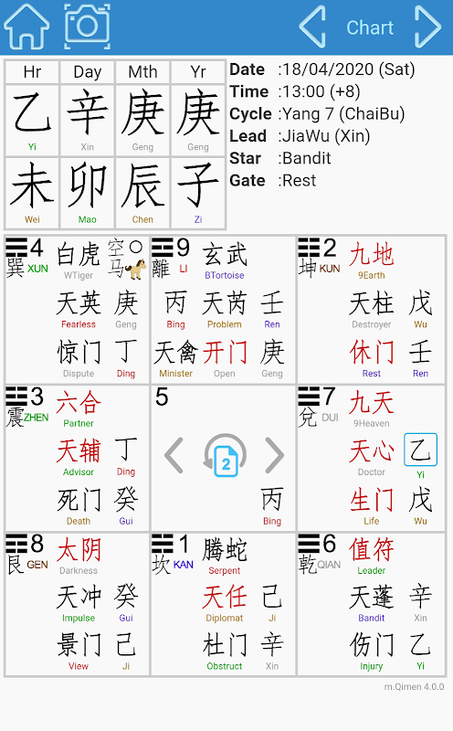 Qi Men Dun Jia (Chai Bu / Zhi Run / Yin) application de traçage graphique.