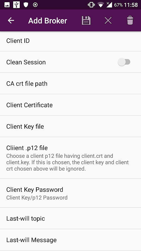 Connectez-vous à n'importe quel courtier MQTT v3.1 et abonnez-vous aux sujets. Effectuez des actions Tasker lors de la publication de messages ou publiez des messages sur des événements Tasker. L'application peut encore être rugueuse sur les bords. Je publierais bientôt le code sur github afin que le développement puisse continuer là-bas.