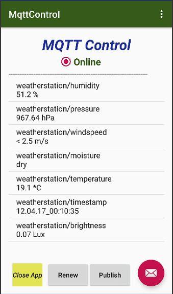 L'application peut également être utilisée pour publier des données sur n'importe quel sujet du courtier connecté. Avec quel "QOS" et si avec ou sans "retenu" peut être spécifié.