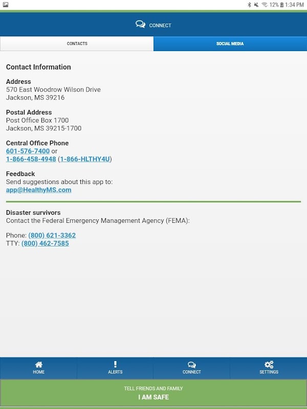 • Available offline are important MS Department of Health phone numbers and an emergency hotline