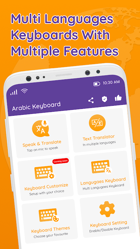 Le clavier multilingue est l'un des meilleurs claviers multilingues qui a de beaux thèmes pour améliorer l'expérience utilisateur. Sur cette application de clavier personnalisée, l'utilisateur peut parler et envoyer des SMS dans n'importe quelle langue. Le clavier multilingue fournit également des paramètres de clavier personnalisables. Dans l'application de clavier de conception, vous pouvez modifier l'apparence et la convivialité. Le clavier multilingue permet aux utilisateurs d'écrire n'importe quel type de message avec de beaux styles de police dans différentes langues. Ce clavier fantaisie multilingue est le meilleur clavier de langue avec des caractères élégants. Le clavier multilingue pour Android modifiera votre vitesse de frappe et vous pourrez également taper en plusieurs langues avec différents arrière-plans et thèmes de clavier. C'est le dernier clavier avec une police élégante dans un clavier multilingue pour Android. Le clavier de saisie vocale est doté de nombreuses caractéristiques essentielles de compétences en écriture pour une description solide. Le clavier de saisie vocale pour Android est une transformation rapide de n'importe quelle langue pour une saisie fluide et facile avec des claviers multilingues.