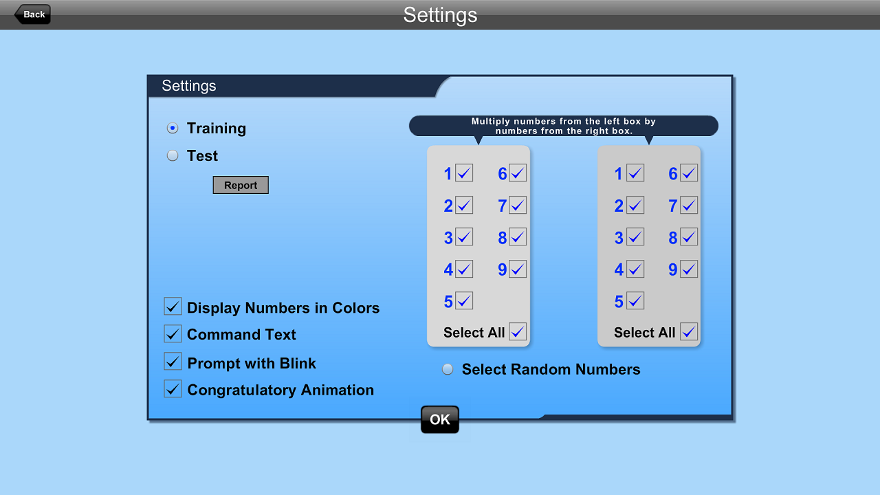 This box is checked by default. This is available only for the “Training” mode. When this is checked, clicking the correct number invites a congratulatory animation. This animation runs for ten seconds. Click anywhere on the screen or press space bar to stop the congratulatory animation.