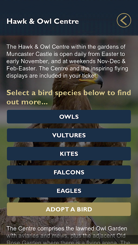 - Contenu audio et vidéo intéressant concernant les jardins et le centre Hawk & Owl