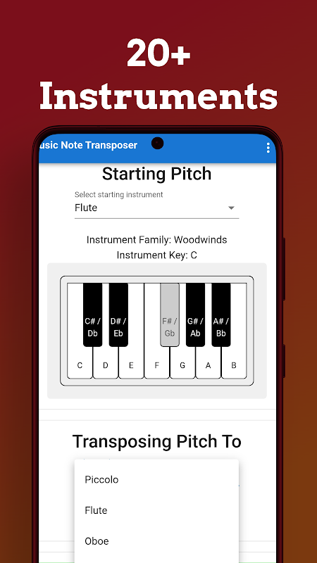 Avez-vous déjà dû transposer une note d'un autre instrument en répétition ? Peut-être avez-vous oublié votre solfège ou n'y avez-vous jamais rien compris. L'application Music Note Transposer est la solution.